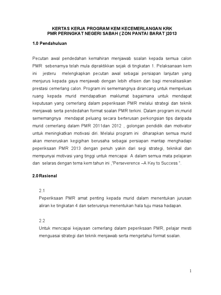 Kertas Kerja Kem Kecemerlangan Pdf